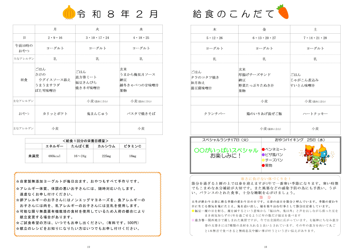むつみこども園の2026年2月のこんだて